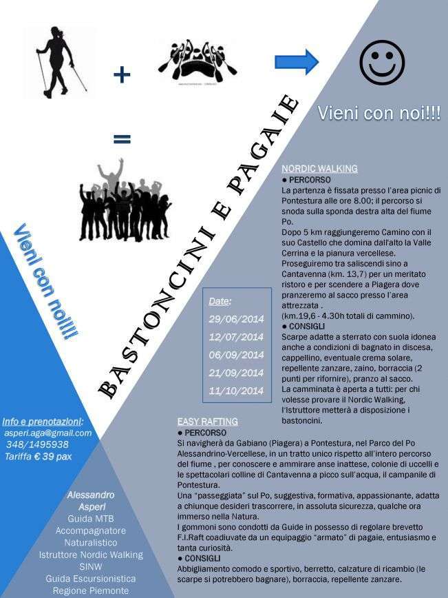 Un'intera giornata dedicata a Nordic Walking e Easy Rafting, nel Parco del Po Vercellese - Alessandrino.