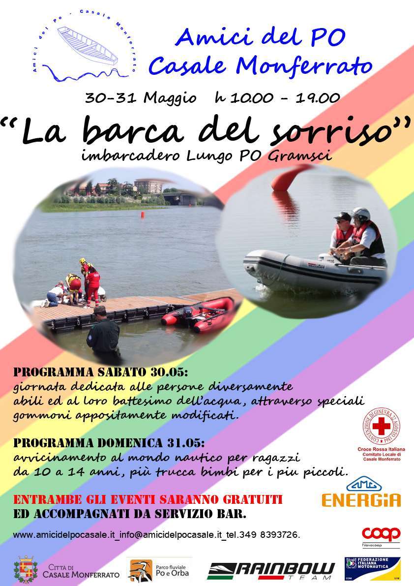 Torna nel weekend del 30 e 31 maggio a Casale Monferrato “La Barca del Sorriso”, una due giorni di iniziative gratuite organizzate dall’associazione casalese Amici del Po: mentre sabato 30 i destinatari saranno in via esclusiva i ragazzi disabili, domenica 31 spazio invece ai ragazzi dalla quinta elementare alla terza media; per tutti sarà occasione del battesimo dell’acqua all’Imbarcadero di Viale Lungo Po Gramsci dalle 10 alle 18.