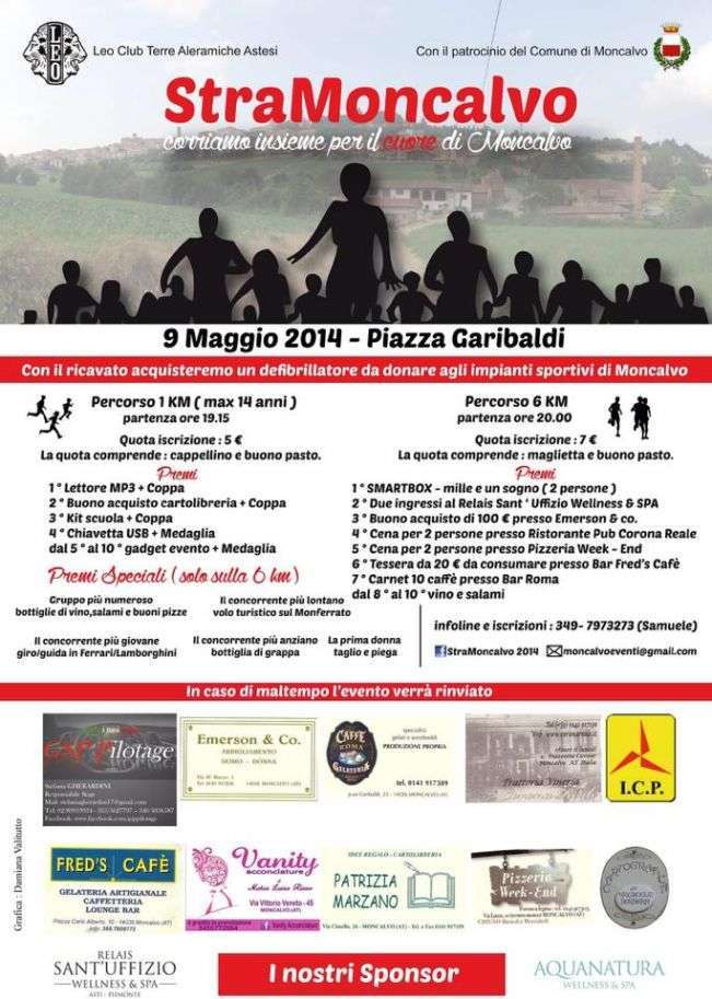 Venerdì 9 maggio prossimo appuntamento con la StraMoncalvo.