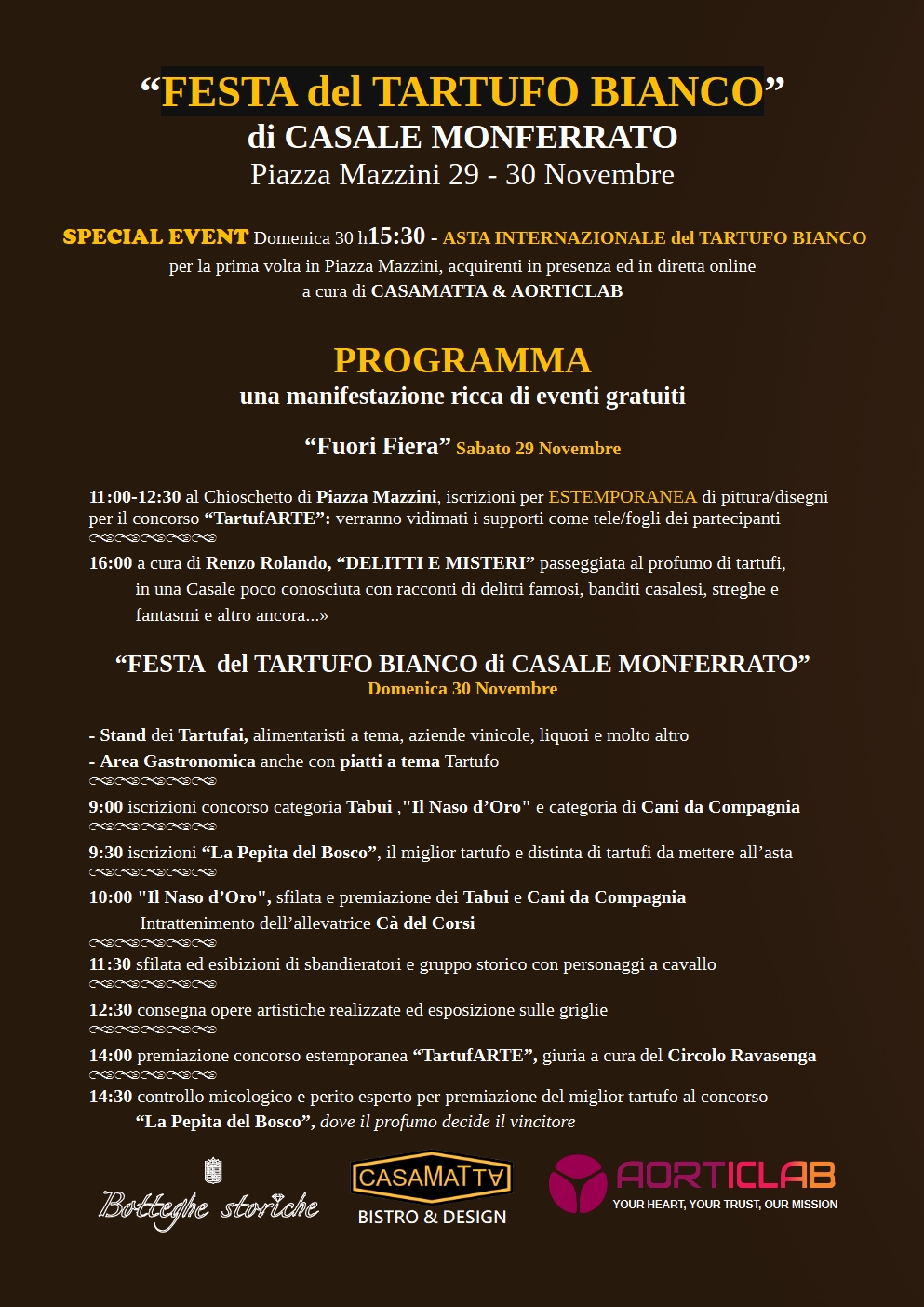 La Festa del Tartufo Bianco del Monferrato è realizzata in collaborazione con Botteghe Storiche, Casamatta e Aorticlab.