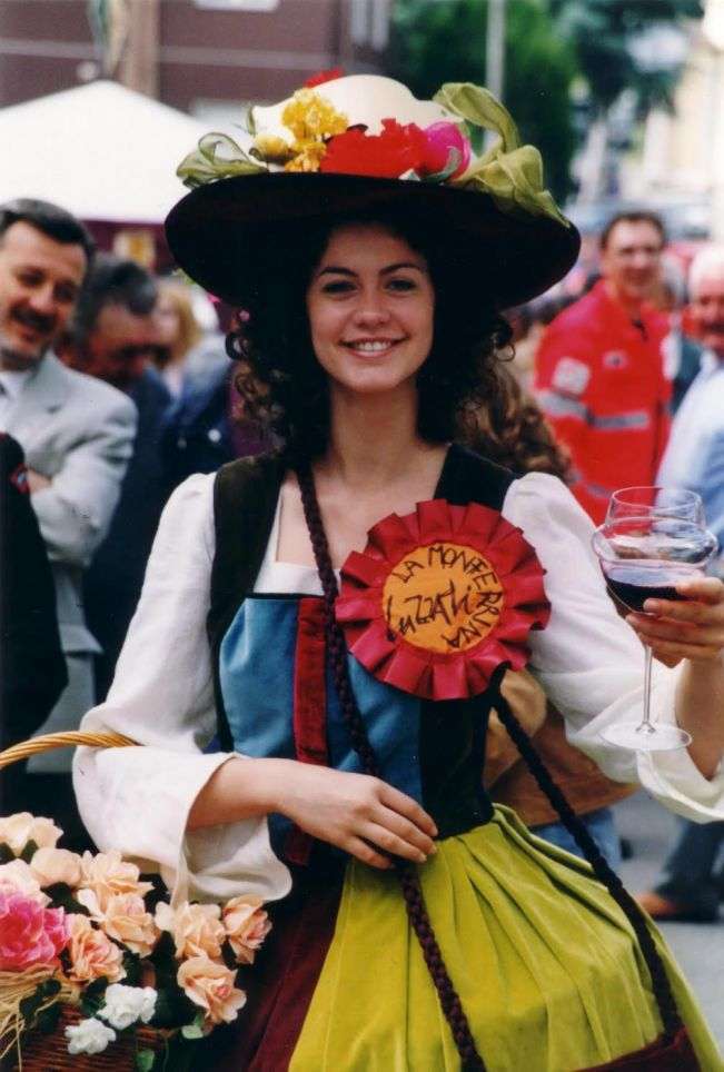 Tredici anni fa, l’artista Emanuele Luzzati disegnò insieme ad Elio Carmi per il Consorzio Mon.D.O. (Monferrato Domanda Offerta), l’immagine di una ragazza sorridente e vivace come i colori del suo abito. Insieme le diedero il nome “La Monferrina”. Da quel giorno la Monferrina sarebbe diventata il testimonial del Monferrato e della grande kermesse “Riso & Rose in Monferrato” nei contesti di alta visibilità.