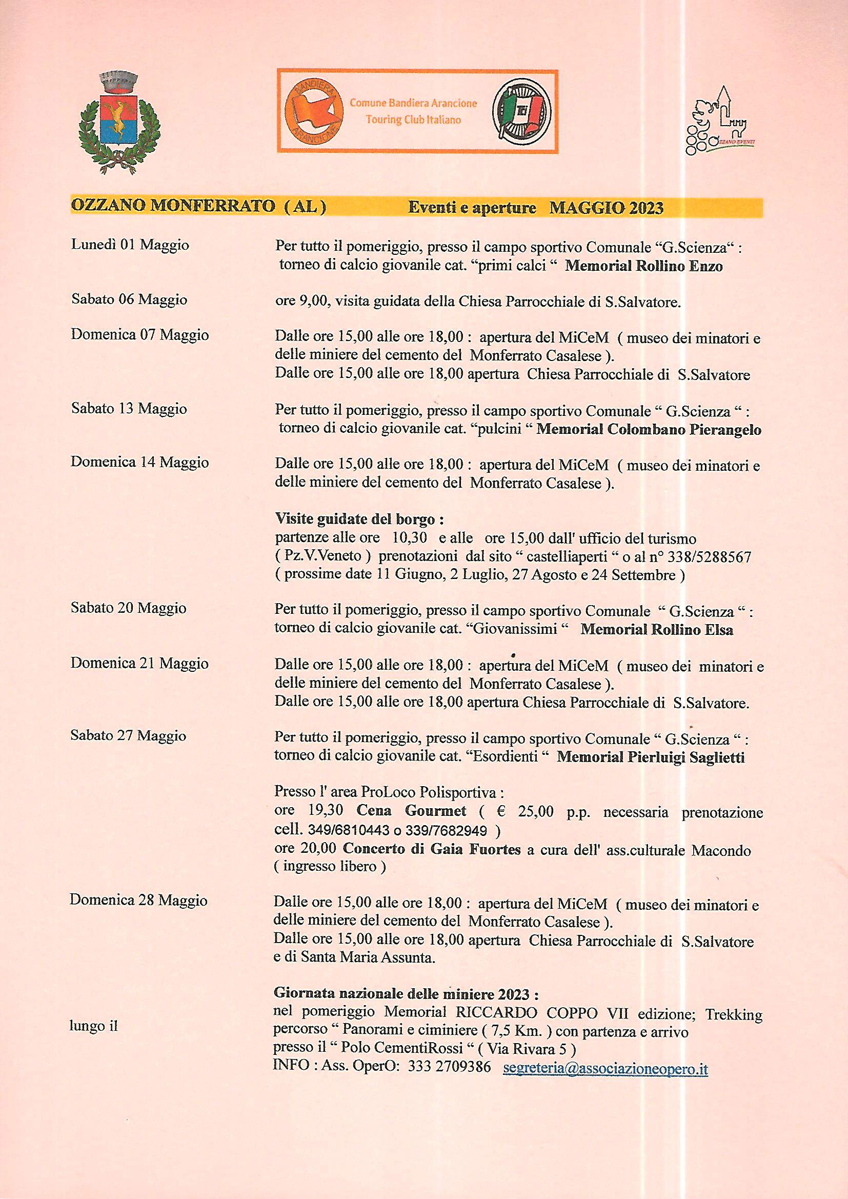 Comune Ozzano Monferrato Comuni via Santa Maria 1 - 15039 Ozzano Monferrato Telefono: +39 (0142) 487.153 Fax: +39 (0142) 487.038 E-mail: info@comune.ozzanomonferrato.al.it Sito Web: http://www.comune.ozzanomonferrato.al.it/ motivazioni bandiera arancione 1,16 Mb pdf bandiera arancione 3,19 Mb jpg Eventi maggio 2023 537,21 Kb jpg